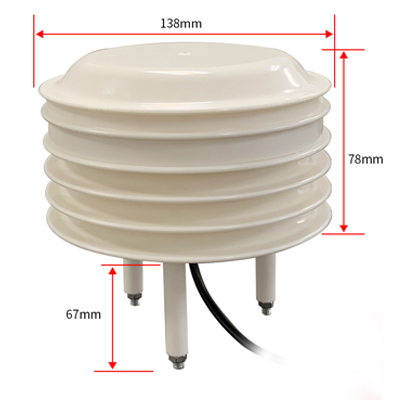 該一體式百葉箱可廣泛適用于環(huán)境檢測,將傳感器安裝在百葉盒內(nèi),設(shè)備采用標(biāo)準(zhǔn)ModBus-RTU 通信協(xié)議,RS485信號輸出,通信距離最大可達(dá)2000米(實測)。