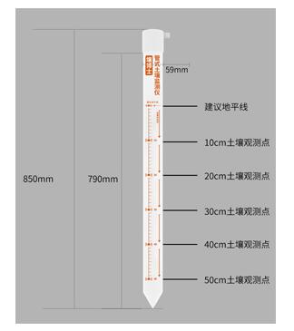 外殼采用PVC塑料管,內(nèi)部發(fā)射近1G赫茲的高頻探測波,可以穿透塑料管,有效感知土壤環(huán)境。
