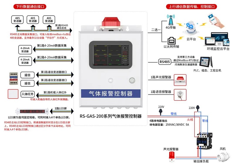 山東仁科氣體報(bào)警控制器是整個系統(tǒng)的核心,擁有收集現(xiàn)場變送器數(shù)據(jù)、上傳平臺遠(yuǎn)程查看、超限報(bào)警、聯(lián)動控制等功能。