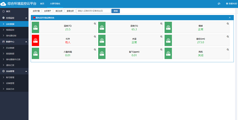 用戶可以通過電腦/手機(jī)登錄環(huán)境監(jiān)控云平臺,遠(yuǎn)程隨時(shí)隨地查看環(huán)境數(shù)據(jù)變化,如此一來,既能做到讓用戶對配電室的環(huán)境了如指掌,又能為檢修人員的安全提供數(shù)據(jù)保障。