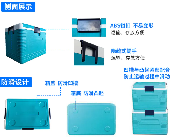 保溫箱箱體 采用三層復(fù)合結(jié)構(gòu)工藝,材料選擇上嚴(yán)格遵循安全環(huán)保標(biāo)準(zhǔn),確保無毒無害特性,表面光潔度 符合衛(wèi)生運(yùn)輸規(guī)范。產(chǎn)品兼具高強(qiáng)度結(jié)構(gòu)、持久保溫性能及長效使用壽命等突出特點(diǎn),完全滿足溫敏物品的嚴(yán)苛運(yùn)輸要求。