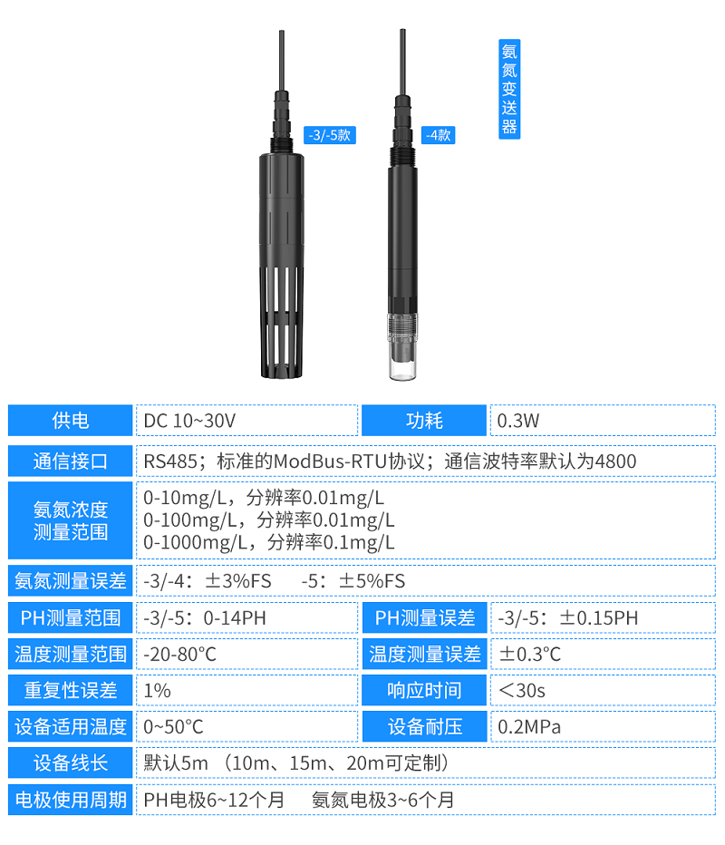 注:以上水質變送器均具備自動溫度補償功能和IP68防水等級,自動溫度補償功能可根據環境溫度變化調整測量值,避免溫度波動帶來的誤差,IP68防水等級可保障其能夠在潮濕甚至水下環境中穩定運行,適用于河流、湖泊、污水處理廠等多種場合。