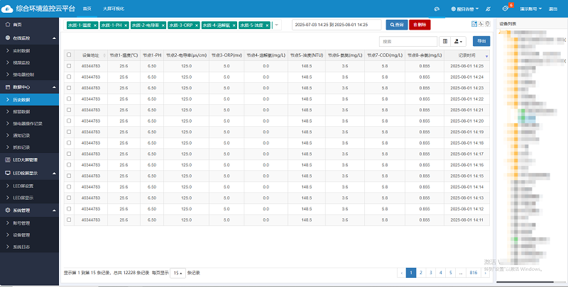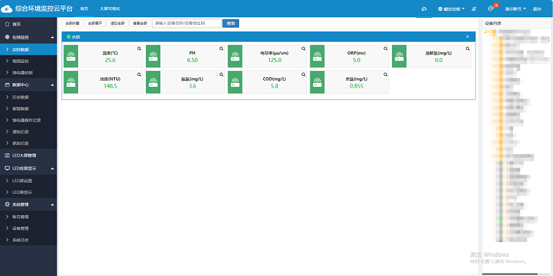 管理人員還可以將水質變送器搭配水質監測站(浮漂式、立桿式、水質取水監測平臺)使用,水質監測站可以將數據上傳至綜合環境云平臺,組成水質監測系統,以便用戶實現對數據的遠程查看及設備的遠程管理。