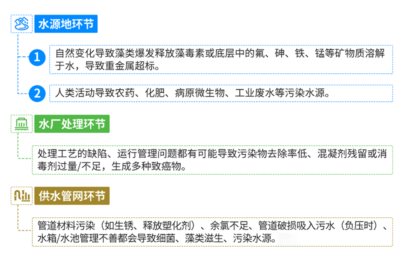 城市供水要經過 “水源地—水廠處理—供水管網” 三個關鍵環節,每個環節都可能暗藏風險。