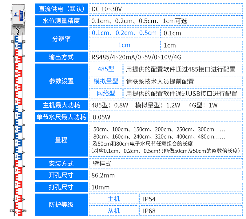電子水尺是一款高精度水位測量設備,以先進的處理器芯片作為核心控制器。其外部防護殼體采用不銹鋼/鋁合金材質,內部結構經過高密封性材料的特殊處理,能夠有效抵抗污泥、污染物和沉積物等外界環境因素的干擾。此外,該設備的采樣精度不受長度影響,可始終保持穩定可靠的高精度測量性能。