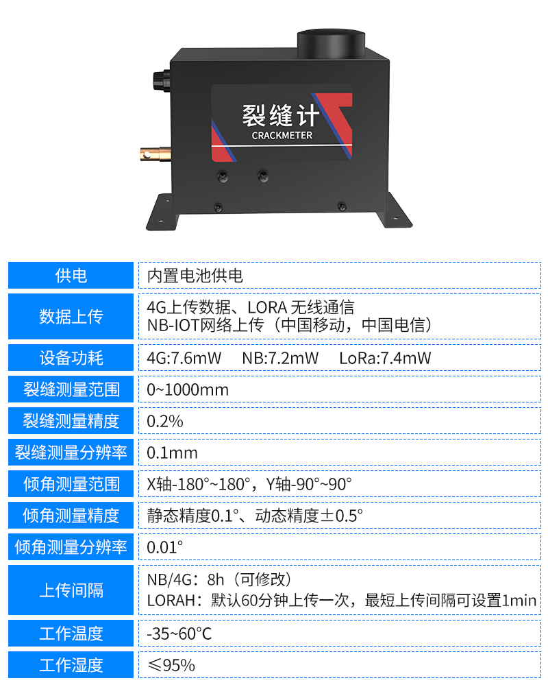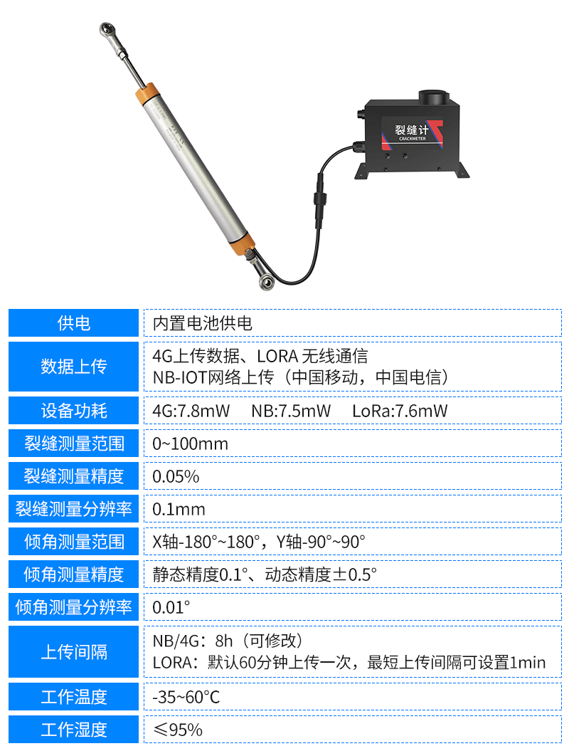 裂縫計采用高精度傳感器技術,可實時測量裂縫的寬度變化與傾斜角度。其裂縫寬度測量分辨率高達0.1mm,能夠有效監測裂縫的擴展與輕微位移;傾斜角度監測分辨率可達0.01°,有助于用戶判斷裂縫的成因。此外,山東仁科還設計了拉桿式與拉繩式裂縫計,可滿足不同結構物的裂縫監測需求。