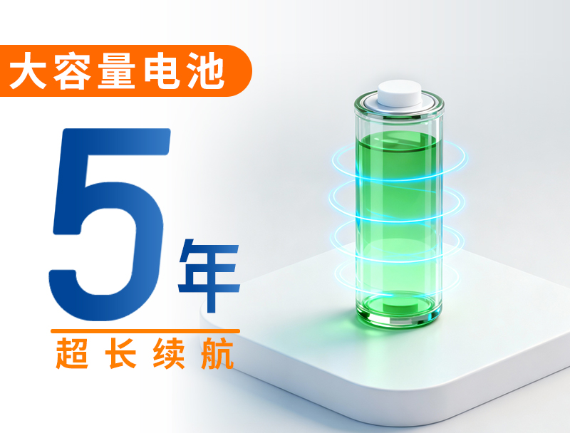 采用低功耗設計與大容量鋰電池,設備可持續穩定運行長達5年(485型設備僅支持電源供電 )。