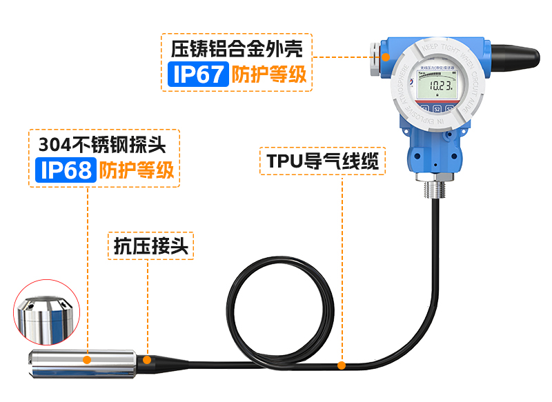 3此外,無線液位變送器配備高品質TPU導氣線纜,具有出色的耐水解、抗老化性能,可常年在水中浸泡而不影響信號傳輸與密封性能。