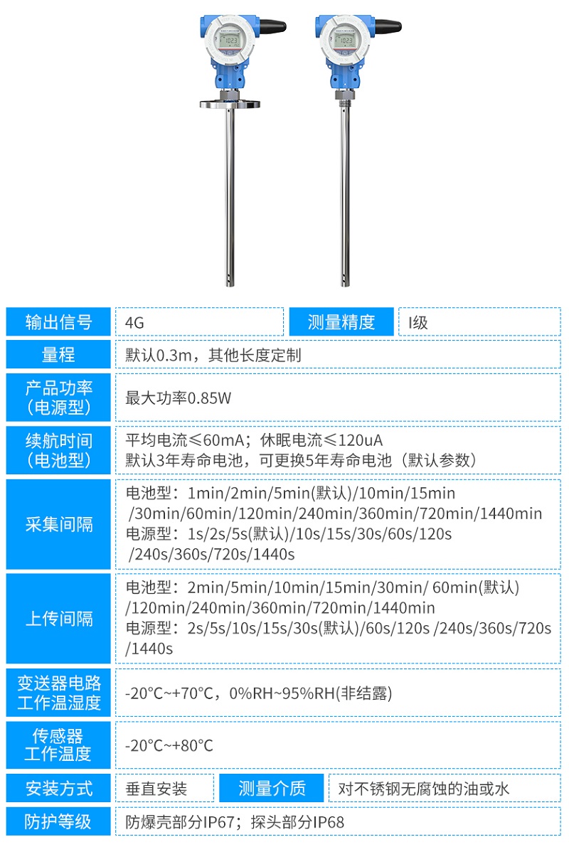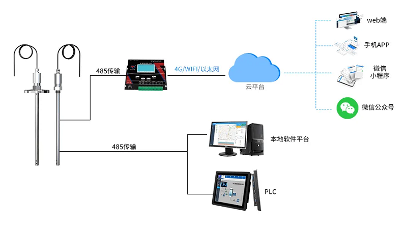 電容式液位計還支持 4G 無線傳輸,無需鋪設物理線路,可快速部署于偏遠監測點、移動監測場景或布線難度大的復雜環境,實現遠距離數據回傳,滿足跨區域、分散式液位監測需求。