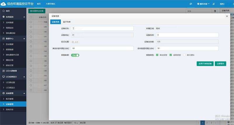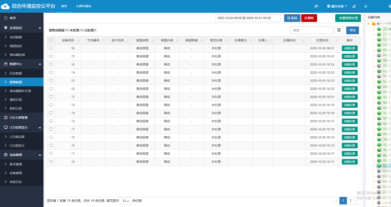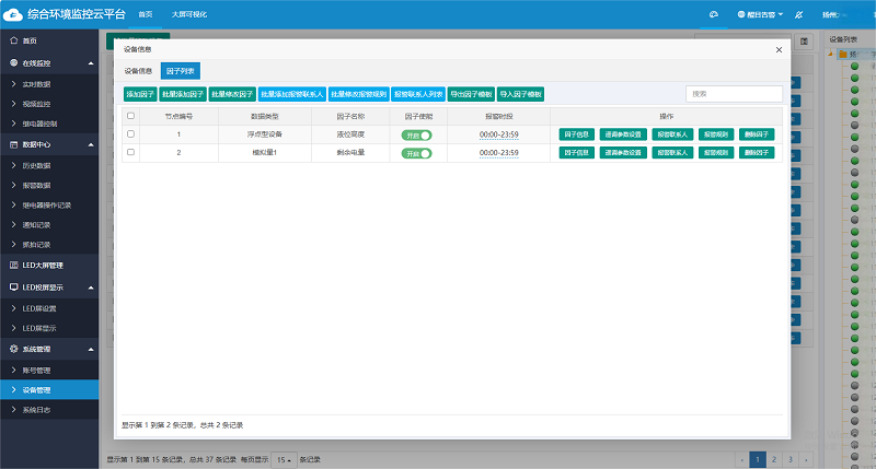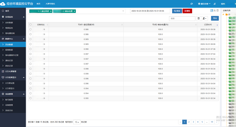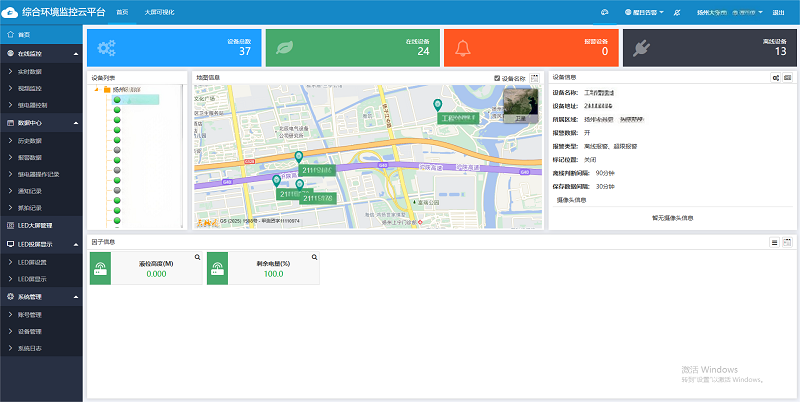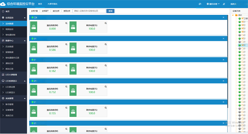 相關人員通過專屬賬號即可在電腦或手機端登錄環境監控云平臺。平臺集成了數據實時查看、歷史數據查詢/導出、智能預警、電子地圖、視頻查看/抓拍、智能控制、數據共享、大屏可視化等一系列功能,助力用戶實現高效的遠程監測與設備管理。