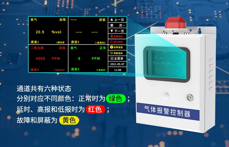 氣體報警控制器可控制風機啟停。當檢測到數據超限或有人員進入相關區域時,設備可自動控制風機啟停;也支持定時啟停風機,滿足特定時間段的使用需求;用戶能通過設備的觸屏手動操作風機啟停,操作便捷直觀;還支持遠程組網控制風機啟停,用戶可在任何地點控制風機。