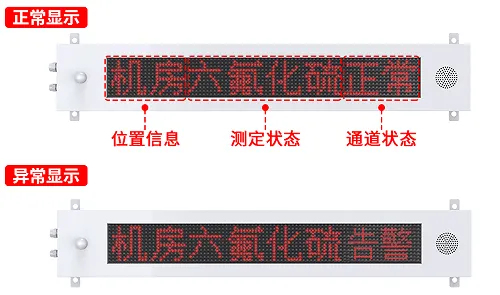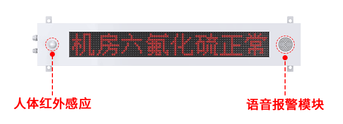 當檢測到室內六氟化硫氣體濃度、氧氣濃度、溫濕度等數據超過所設閾值時,或者有人員接近/進入相關區域時,設備會通過聲光報警/語音報警/聲光語音同時報警的方式及時向現場人員發出警示。如果設備自身出現故障狀態則通過內置的蜂鳴器實現蜂鳴報警,提醒工作人員及時處理設備問題,使控制器可以正常運行。