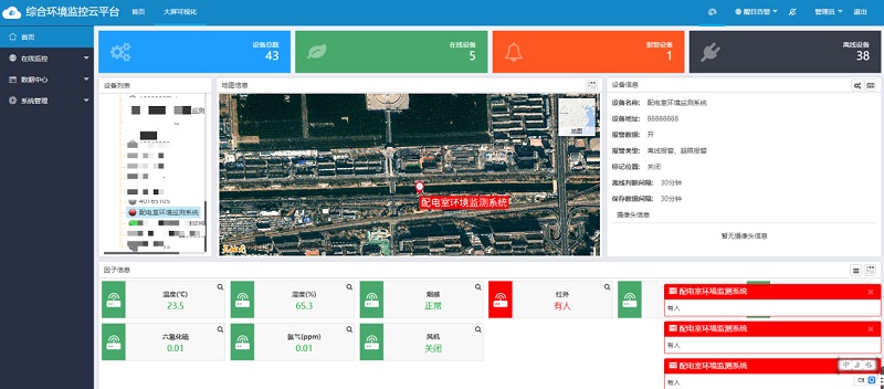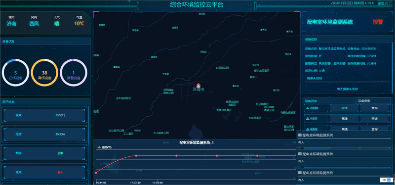 環境監控云平臺可以實現對環境參數的實時數據采集,用戶可以通過電腦或移動設備登錄平臺,隨時查看當前的環境監測數據。