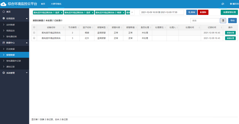 支持短信、郵件、振鈴、微信等遠程報警方式,也支持彈窗報警、節點變紅、聲音等頁面報警方式。用戶可以為各要素設置安全閾值,當配電室中的一個或多個數據超過所設置的安全閾值時,便會觸發報警,提醒用戶及時采取安全措施,防止爆炸、中毒、缺氧等事故的發生,從而保障生命財產安全。