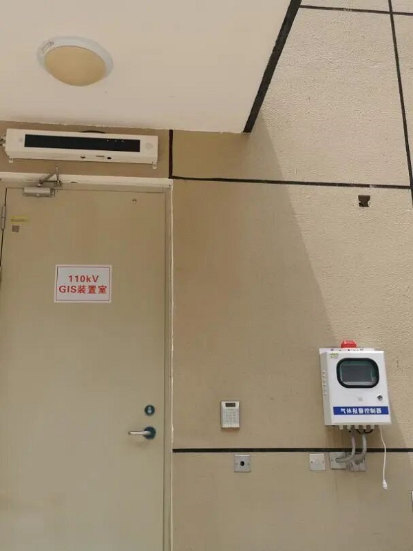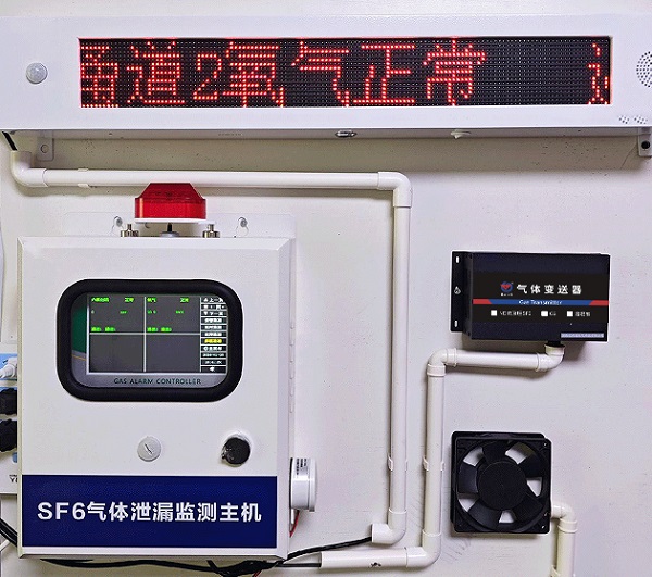 02氣體報警控制主機放在門口位置,實時顯示配電室內六氟化硫及氧氣濃度,當SF6高于設定值或氧氣濃度低于設定值時報警主機觸發報警,啟動聲光報警,并聯動風機等排風系統。