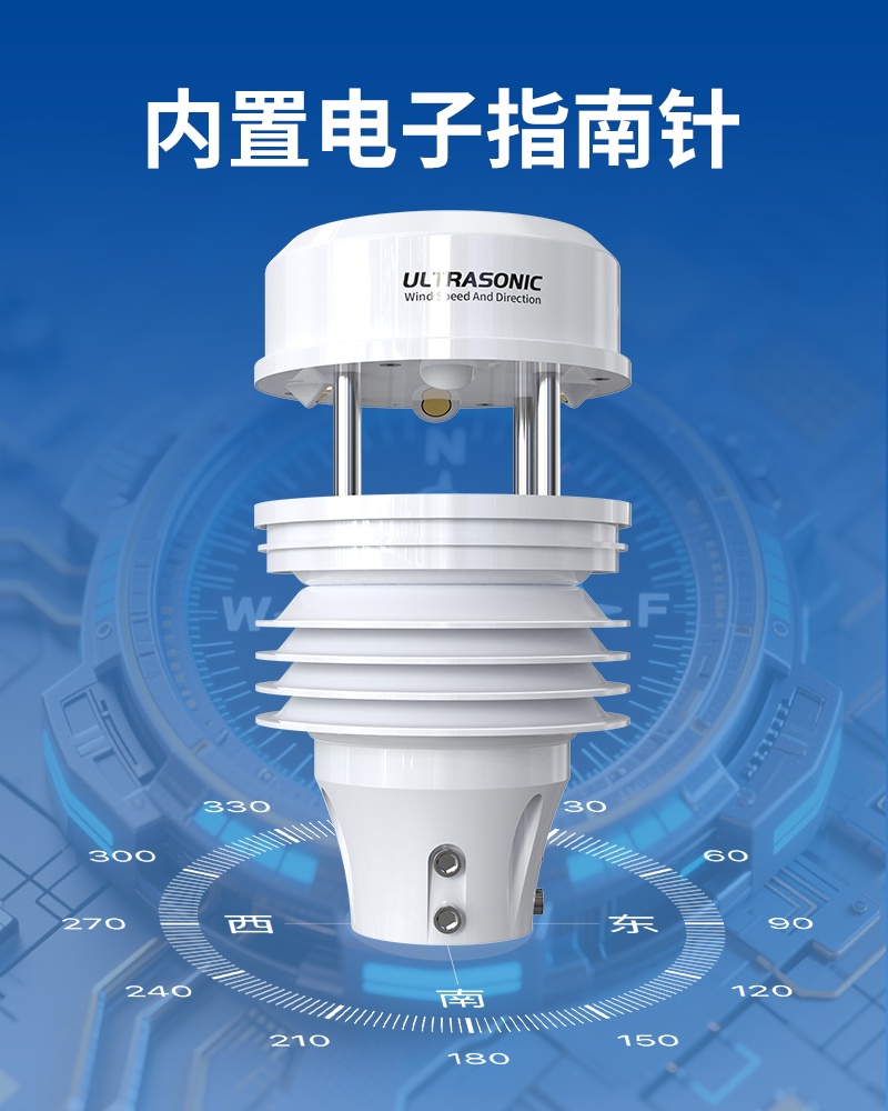 超聲波氣象監測設備支持內置電子指南針,大幅簡化了傳統測風設備的安裝流程。傳統測風設備對安裝方位要求嚴苛,需工作人員反復調試校準,不僅耗時耗力,且在復雜環境下難以精準完成。而超聲波氣象監測設備內置電子指南針,安裝時無方位限制,只需保證水平安裝即可,無需繁瑣的方位校準。