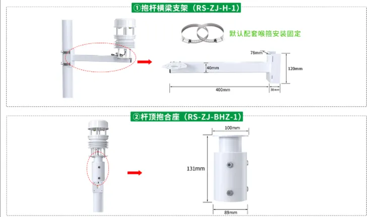 01 基礎款設備支持抱桿橫梁支架、桿頂抱合座兩種安裝方式。