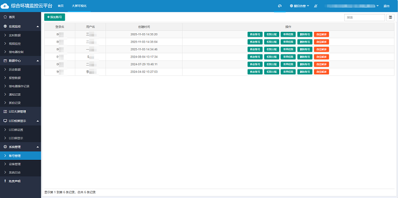 支持多人同時(shí)登錄環(huán)境監(jiān)控云平臺(tái),支持建立不同級(jí)別子賬號(hào)并配以不同權(quán)限,實(shí)現(xiàn)數(shù)據(jù)共享,讓監(jiān)測(cè)過(guò)程查無(wú)遺漏。