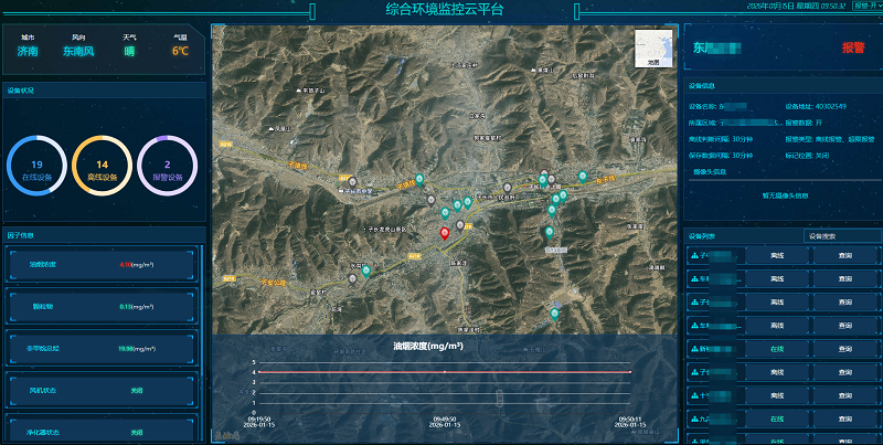 用戶可以隨時(shí)隨地在手機(jī)或電腦登錄環(huán)境監(jiān)控云平臺(tái)查看油煙檢測(cè)儀監(jiān)測(cè)到的油煙、顆粒物、非甲烷總烴的數(shù)據(jù),掌握數(shù)據(jù)變化趨勢(shì);查看風(fēng)機(jī)狀態(tài)、凈化器狀態(tài)、風(fēng)機(jī)電流和凈化器電流數(shù)據(jù),實(shí)現(xiàn)24小時(shí)遠(yuǎn)程監(jiān)管。