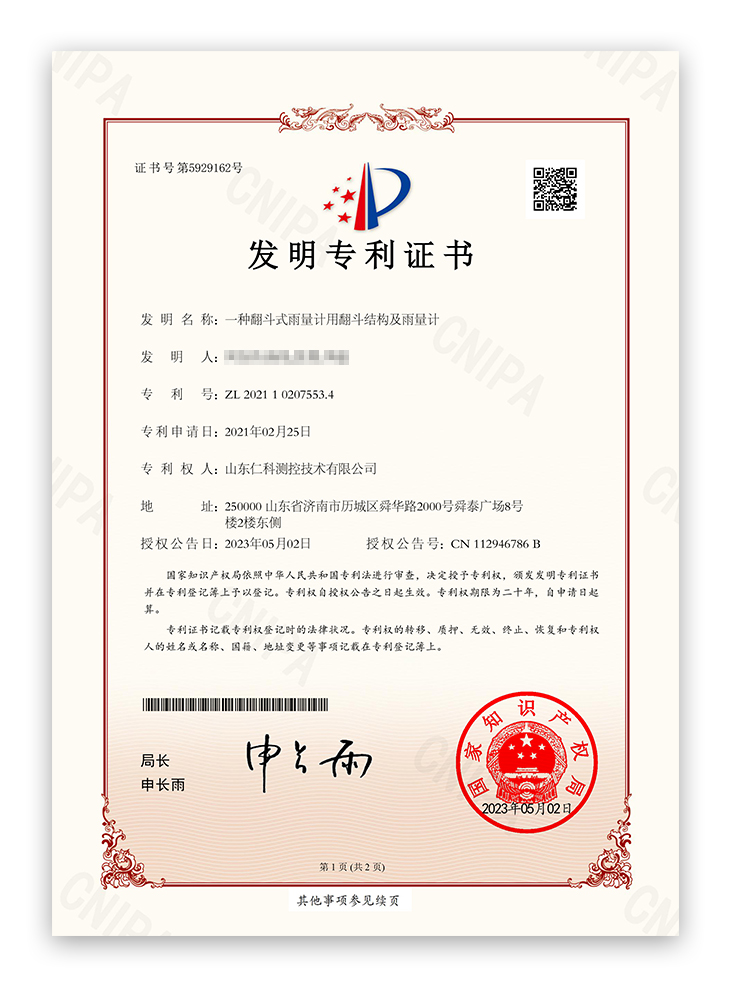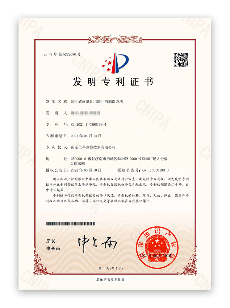 山東仁科擁有雄厚的研發(fā)實力與專業(yè)的技術研發(fā)團隊,始終堅持自主創(chuàng)新,所研發(fā)的翻斗式雨量計斬獲多項國家發(fā)明專利。依托專利技術加持,翻斗式雨量計在核心性能、工藝細節(jié)、實用體驗上不斷升級,既嚴格契合國標規(guī)范,又實現(xiàn)技術與功能的雙重創(chuàng)新。