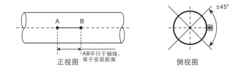 上下游換能器安裝點連線與管軸平行,且距離為主機顯示的安裝距離。如圖所示:A,B 為所需定位的安裝點。