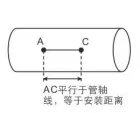 ①按照主機提供的安裝距離在管道同側先定位兩個安裝點 A、C,兩個安裝點的連線AC 與管軸平行。