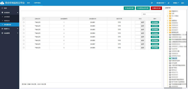支持電腦端、APP端遠程手動控制現場設備繼電器,且繼電器名稱可自定義編輯,相應繼電器控制功能是否啟用客戶可自行編輯。