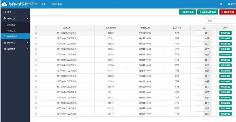 支持電腦端、APP端遠程手動控制現場設備繼電器,且繼電器名稱可自定義編輯,相應繼電器控制功能是否啟用客戶可自行編輯。