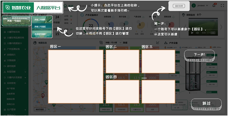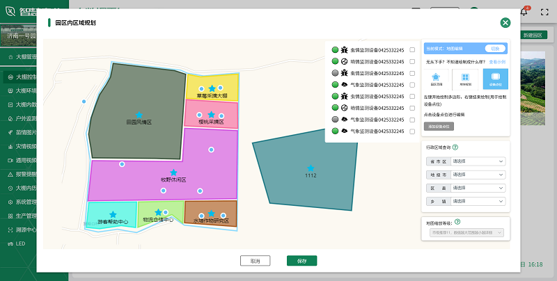 在智慧農業大數據平臺上,園區規劃模塊提供了科學的決策支持工具。通過整合地理信息系統(GIS)和大數據分析,平臺能夠幫助農業管理者全面了解園區的土地資源、氣候條件、土壤類型等關鍵信息,從而進行合理的種植規劃和資源配置。