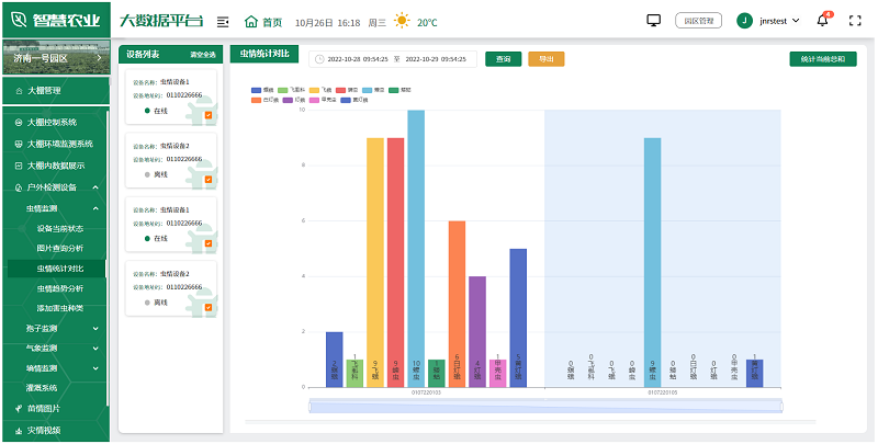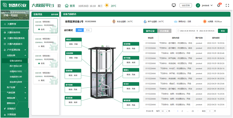 調用百度AI識別,自動識別害蟲種類和數量,進行統計和趨勢分析,提供精準的蟲害數據。