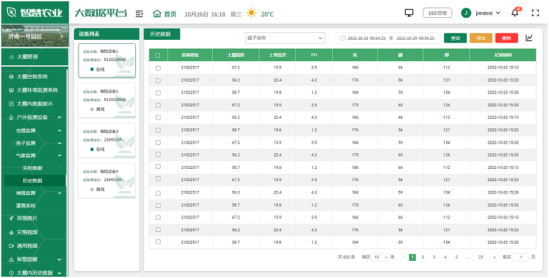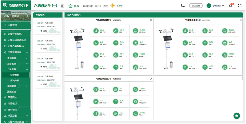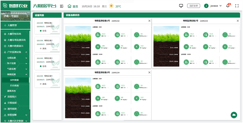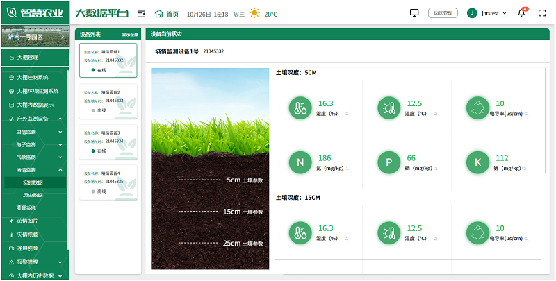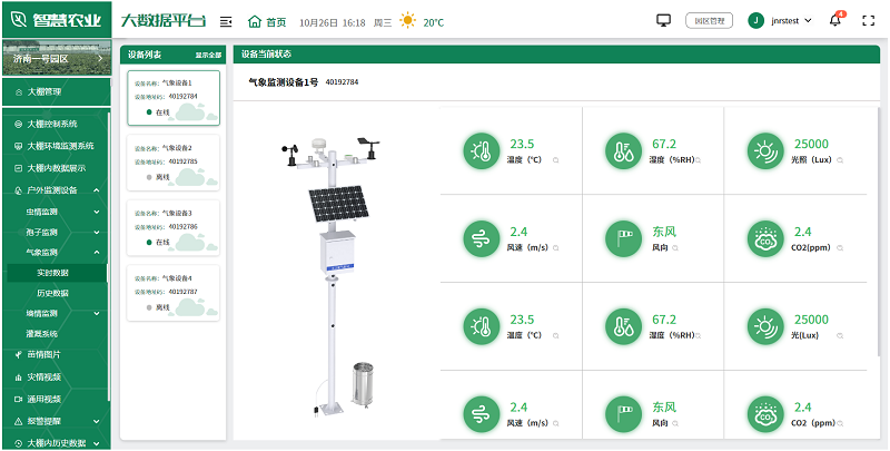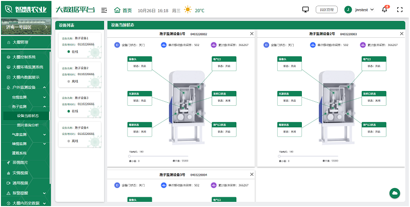 用戶可根據實際情況,選擇安裝在園區的各種監測設備,如土壤濕度傳感器、氣象站、蟲情測報儀、孢子捕捉分析儀等,全面監測園區的環境變化,及時發現并解決生產中的問題,為未來的農業生產提供科學依據。
