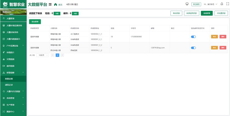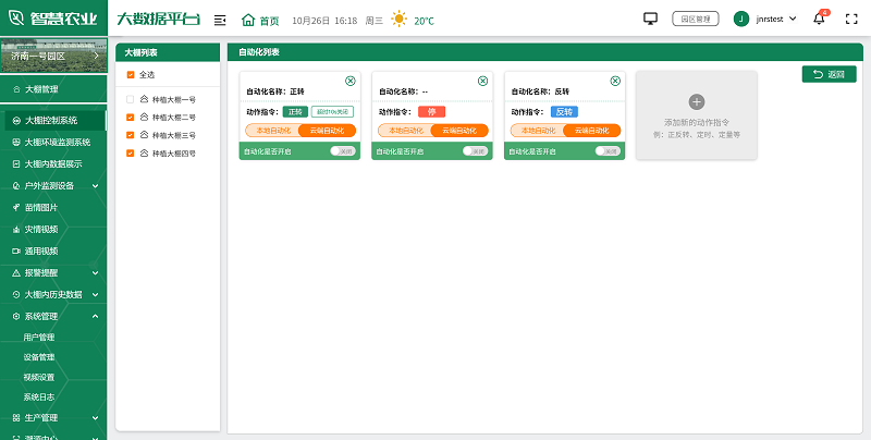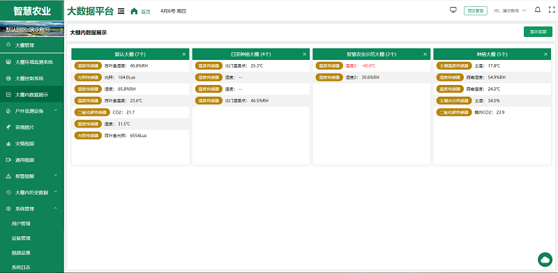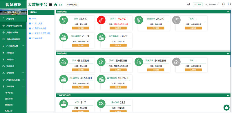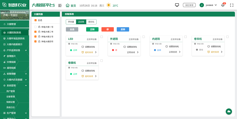 智慧農業大數據平臺通過連接各種智能傳感器和設備,實現了對棚內/戶外環境的實時監測和精準調控。平臺可以實時收集溫濕度、光照強度、二氧化碳濃度等關鍵參數,還擁有開關量、正反轉、百分比控制功能,能夠通過數據分析,自動調節棚內環境,也能通過手機或電腦隨時進行遠程控制,確保作物在最適宜的條件下生長,實現智能管理。