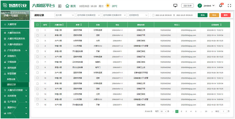 超限報警:當環境監測數據超過設定上下限值時可以進行報警。