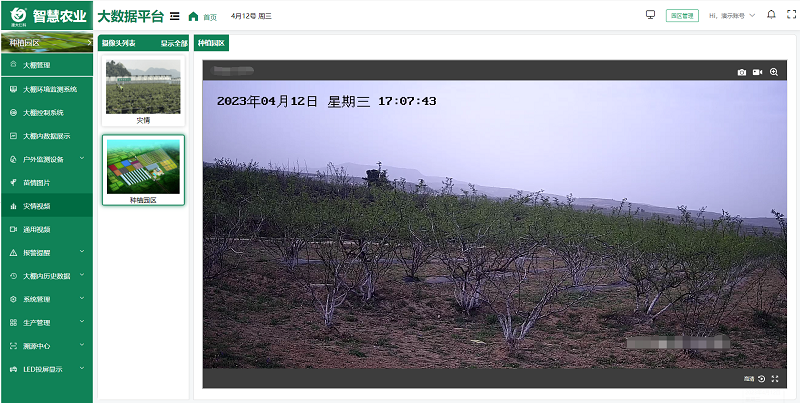 安全是農業生產的重要保障。智慧農業大數據平臺可集成高清攝像頭等監控設備,為農業生產增添了一雙 “千里眼”。遍布園區各個角落的攝像頭,無論是田間地頭,還是養殖區域、倉庫等,都能24h進行全方位、無死角的實時監控。用戶可以通過平臺查看各個區域的實時畫面,確保生產安全,實現及時調度。