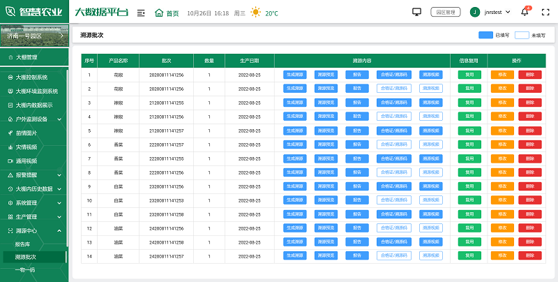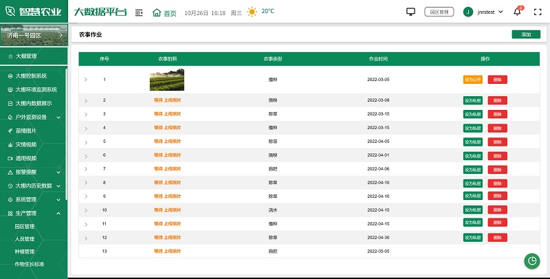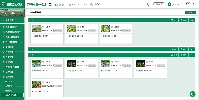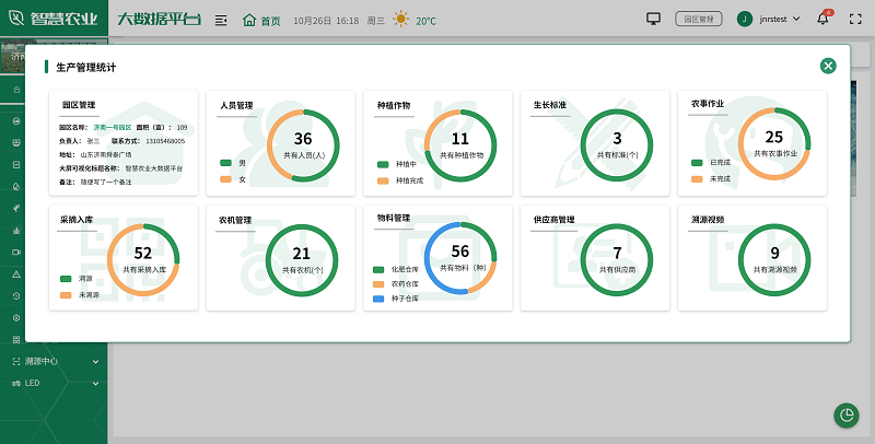 生產管理是智慧農業大數據平臺的核心功能之一。通過集成各種生產管理系統,平臺實現了對農業生產全過程的數字化管理。從種植、施肥、灌溉到收獲,每個環節都可以在平臺上進行記錄和管理。平臺支持農事任務分配、人員管理、農機管理、物料管理、為作物設置生長標準等功能,幫助管理者優化生產流程,提高工作效率。