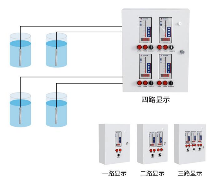 消防液位顯示器還支持多路液位傳感器顯示在同一箱體上(至多 4 路),可以實(shí)現(xiàn)一對(duì)多的就地顯示情況,有效降低巡查成本,提升巡查效率。